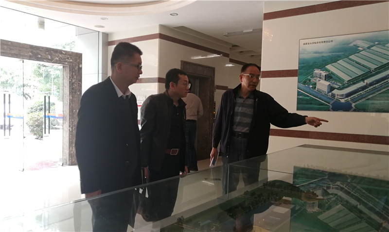 图为东方智能仪表公司董事长黄志刚与工作组交流