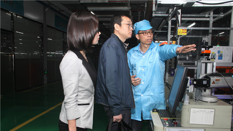 图为工作组参观立达信生产车间