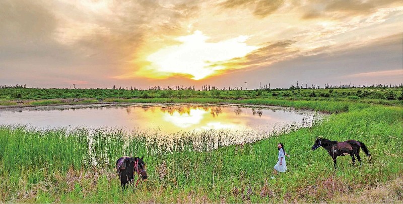 当盛夏的清风拂过层层叠叠的山峦,准能矿山生态旅游区满目苍翠、繁花似锦。新疆杨、樟子松、山杏、紫穗槐……300余种树木花草和农作物在这里扎根;狐狸、黄羊、天鹅、赤麻鸭……近百种动物在这里安家,俨然一幅“山青、水绿、景秀、物丰”的人与自然和谐共生的生态美景。