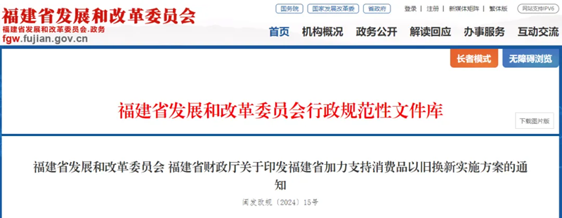 福建省发展和改革委员会 福建省财政厅关于印发福建省加力支持消费品以旧换新实施方案的通知