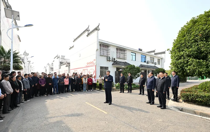 11月4日至6日,中共中央总书记、国家主席、中央军委主席习近平在湖北考察。这是5日上午,习近平在咸宁市嘉鱼县潘家湾镇四邑村考察时,同村民们亲切交流。新华社记者 谢环驰 摄