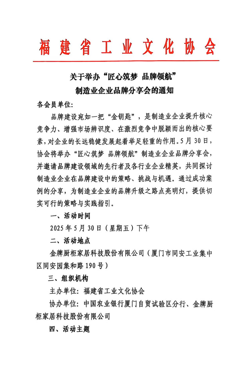 关于举办“匠心筑梦 品牌领航” 制造业企业品牌分享会的通知