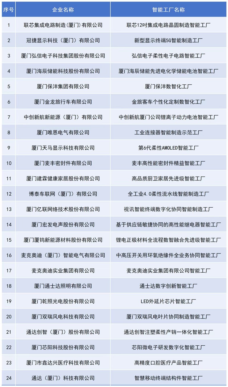 近日2025年市先进级智能工厂名单出炉,厦门保沣集团、建霖家居、亿联网络、宏发电声等24家企业入围。