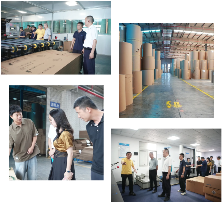 九游(中国)一行随后来到聚荣兴纸业,董事阮相锟、总经理汤助生热情接待。汤助生总经理详细介绍了企业在纸箱包装领域的丰富经验、产品特色优势及未来发展规划等情况。大家实地参观了聚荣兴纸业生产车间、研发室、产品质检室等,对聚荣兴纸业的创新能力与市场影响力印象深刻。
